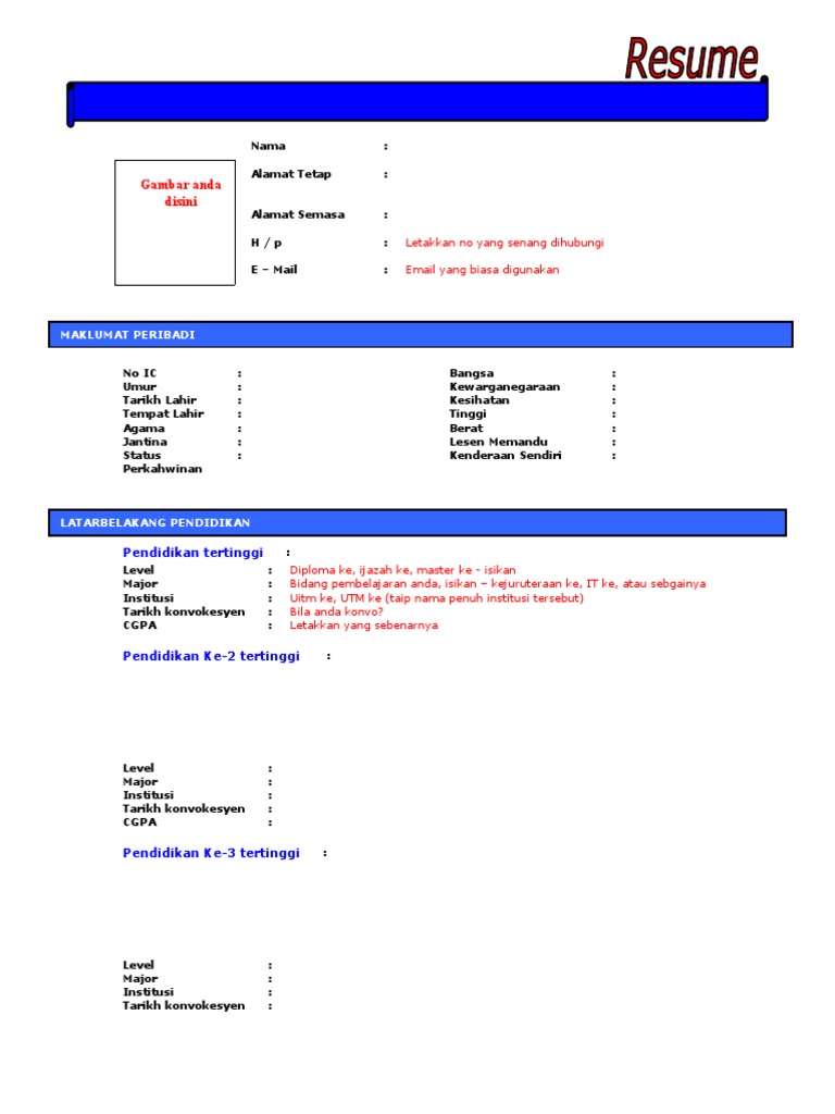 KERJAYA INFO from kerjayainfo.com Pilih dari ratusan contoh daftar riwayat hidup. Buat resume dan daftar riwayat hidup profesional tanpa keahlian desain. Berisi contoh cv lamaran kerja doc, contoh daftar riwayat hidup, contoh cv bahasa inggris, contoh cv yang menarik & baik, contoh cv kreatif, cara membuat cv. Contoh surat lamaran kerja tamatan smk. Contoh cv lamaran kerja berikut dapat membantu mu untuk membuat curriculum vitae menarik. Cv itu seperti umpan ketika anda memancing dan umpan tersebut harus baik dan lezat agar dimakan ikan. Cv adalah riwayat hidup tertulis yang biasanya digunakan sebagai syarat untuk mendaftar pada proses seleksi atau rekrutmen tertentu. Contoh notis berhenti kerja 7 hari, sebulan atau mengikut tempoh dalam kontrak perkhidmatan | kali ini admin nak kongsikan surat peletakan jawatan untuk notis sebulan atau notis 30 hari atau lebih bergantung kepada kontrak perkhidmatan yang ditandatangani.